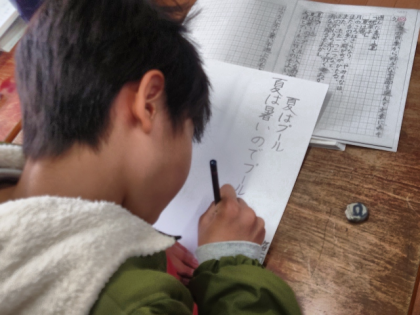 国語科の時間は、清少納言の「枕草子」をもとに、四季を表す文章を一人一人考えて書きました。