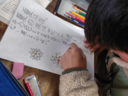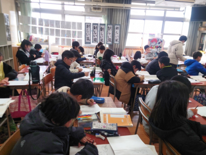 国語科の時間は、清少納言の「枕草子」をもとに、四季を表す文章を一人一人考えて書きました。