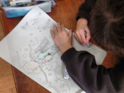 国語科の教科書の「かさこじぞう」を読んで、物語のイメージを絵に表現しています。