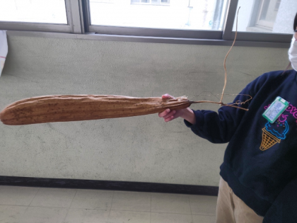 自分たちで育てた大きなヘチマの実を見せてくれました。