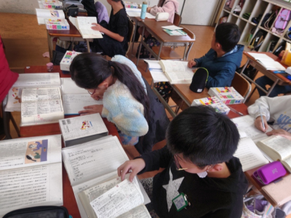 国語科の時間は、辞書を使って、説明文「数え方を生み出そう」の意味調べをしています。