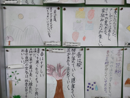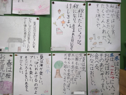 国語科の時間は、清少納言の「枕草子」をもとに、四季を表す文章を一人一人考えて書きました。