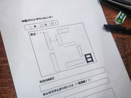 1人1枚ずつ分担して、卒業式までの「カウントダウンカレンダー」をつくっています。