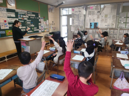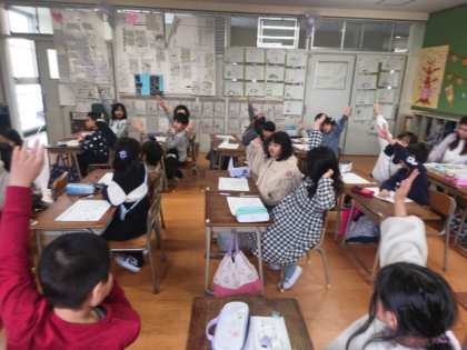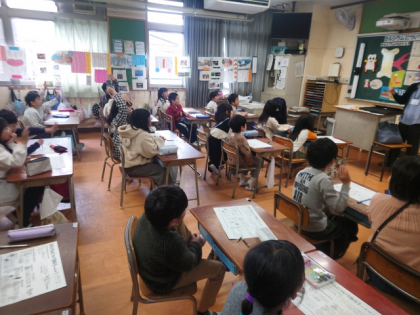 茨田東小学校の栄養教諭の先生に来ていただき、2年生の教室で栄養指導を行いました。