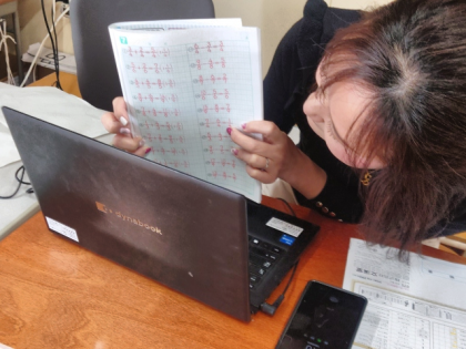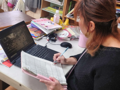 教室と各家庭を結んでオンライン朝の会を行っています。