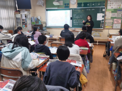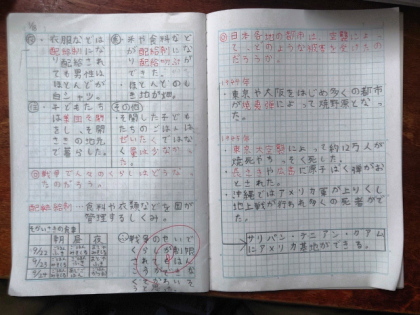 社会科の時間は、日本各地の都市が空襲によってどのような被害を受けたのか、教科書や資料集をもとに調べました。