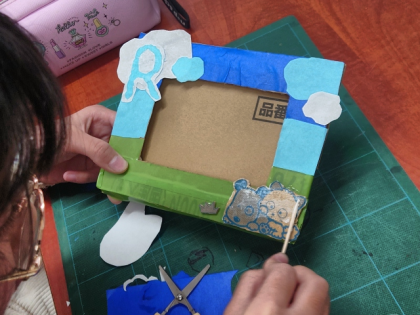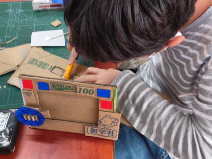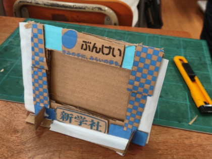 図画工作科の時間は、段ボールを材料にして、自分だけのフォトフレームを作っています。