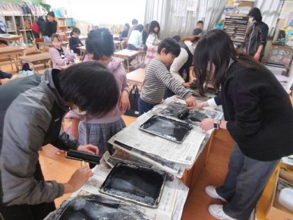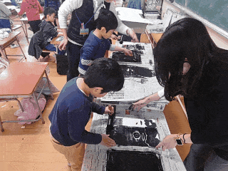 図工科の時間は、版画を制作しています。