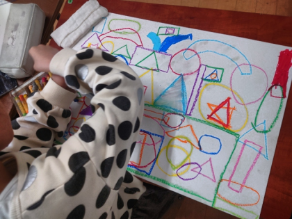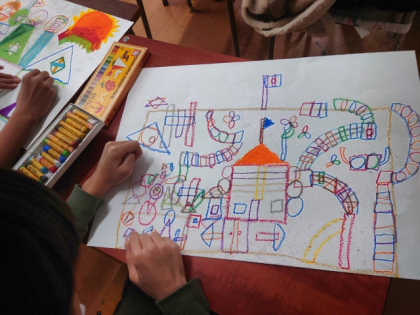 図工科の時間は、パスを使って、「○△□のおしろ」を描きました。
