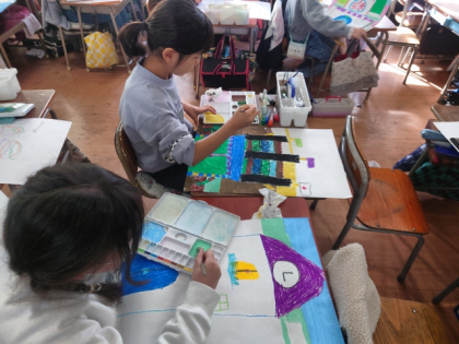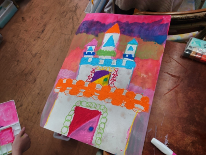 図工科の時間は、パスを使って、「○△□のおしろ」を描きました。