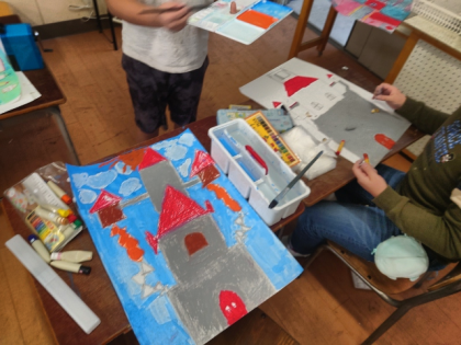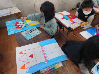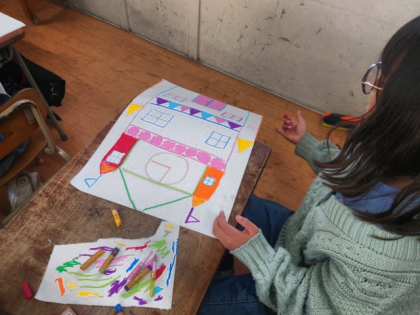 図工科の時間は、パスを使って、「○△□のおしろ」を描きました。