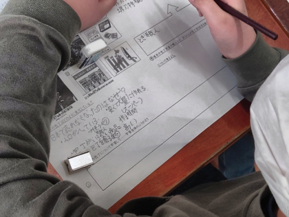 社会科の時間は、包丁づくりを守るために、堺市ではどのような取り組みをしているのか調べました。