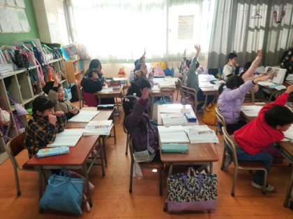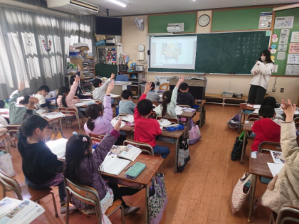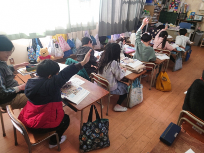 国語科の時間は、教科書の挿し絵を見て、知っているお話を探して発表しました。