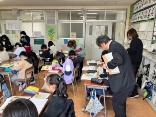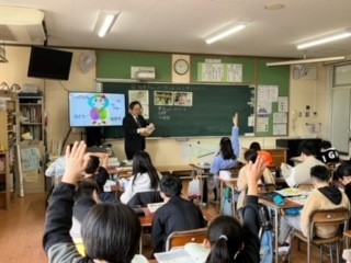 この日は、4年生の2クラスで校長が公開授業を行いました。