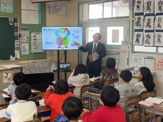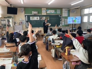 この日は、4年生の2クラスで校長が公開授業を行いました。