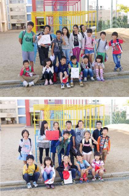 さあ、オリエンテーリングがスタートです。出発前に班ごとに写真をとりました。