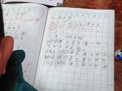 算数科の時間は、「20+30」の計算の仕方をみんなで考えました。