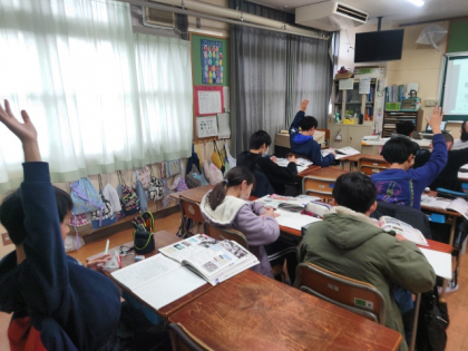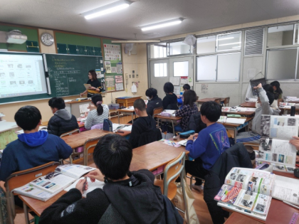 社会科の時間は、戦後、日本が世界の仲間にもどるまではには、どのようなことがあったのか、教科書や資料集で調べました。