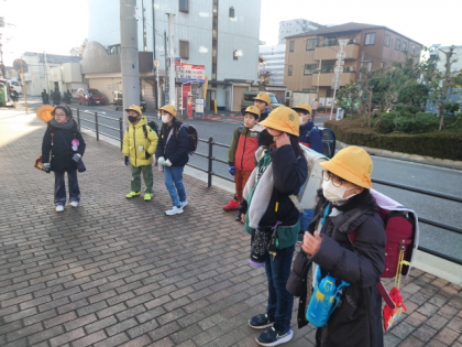 運営委員会の子どもたちと一緒に、教職員も自分から元気よくあいさつした子どもたちに「葉っぱ」を渡します。