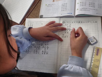 算数科の時間は、「64×48」の筆算の仕方を考えました。