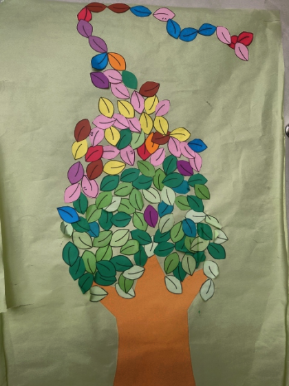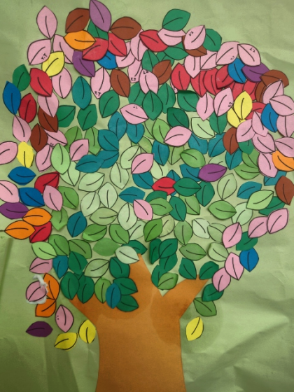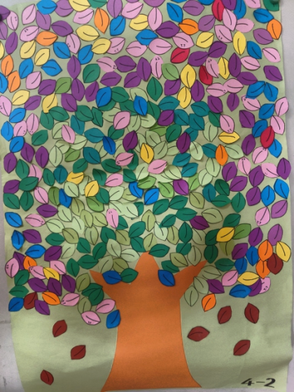 3日間、朝の時間、休み時間、下校時間など、子どもたちの元気なあいさつの声がひびき、各教室の「あいさつの木」はカラフルな葉っぱでいっぱいになりました。