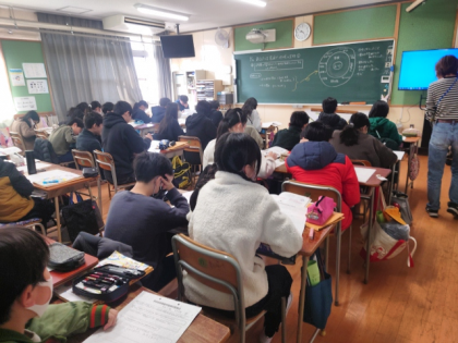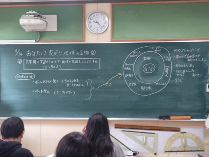 家庭科では、2年間の学習を生かして、地域や家庭をよりよくする工夫について学習しています。