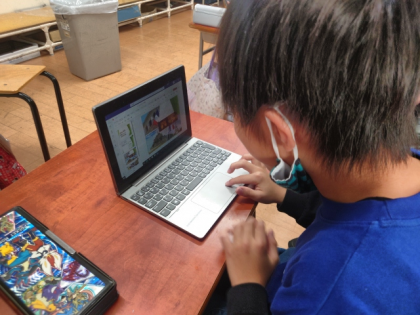国語科の時間には、外国のことを調べて紹介する学習をしています。