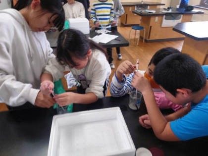 理科の時間は、水の温度を上げると水にとける量がどのように変わるのか実験しました。