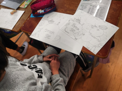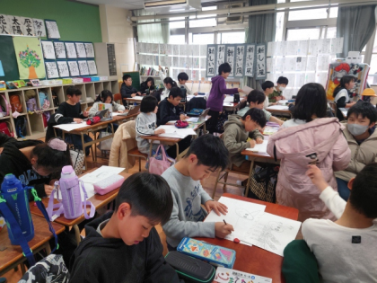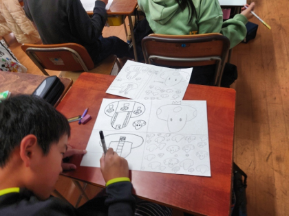 今日は、思い思いのデザインをもとに下描きを描きました。