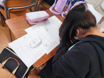 今日は、思い思いのデザインをもとに下描きを描きました。