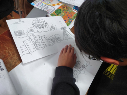 行ってみたい、住みたい町を想像して夢の町を描いています。