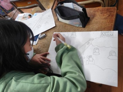行ってみたい、住みたい町を想像して夢の町を描いています。