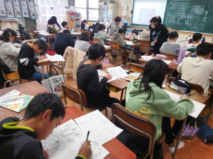 今日は、思い思いのデザインをもとに下描きを描きました。