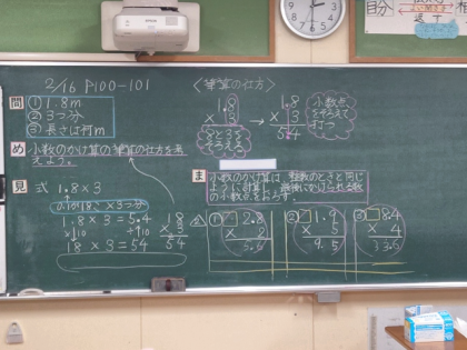 算数科の時間は、小数のかけ算の筆算の仕方について考えました。