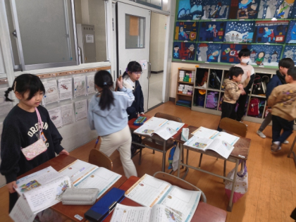 教科の学習をしているクラスもあれば、発表会の練習をしているクラスもありました。