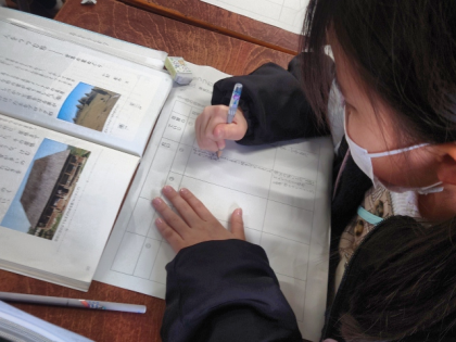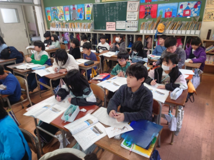 国語科の時間は、教材文「人をつつむ形ー世界の家めぐり」の学習をしています。