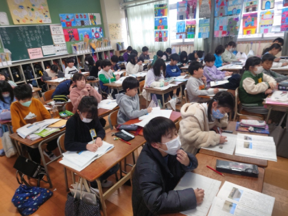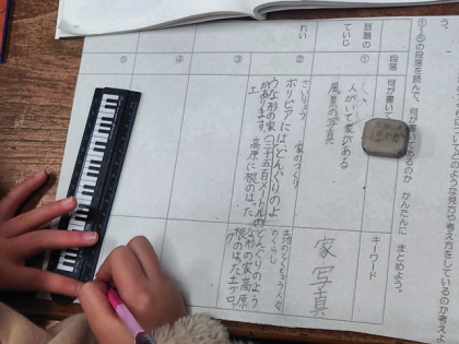 国語科の時間は、教材文「人をつつむ形ー世界の家めぐり」の学習をしています。