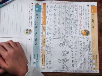 道徳の時間は、教科書の教材文「三つのつつみ」を学習しました。