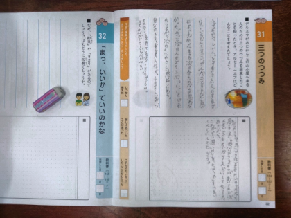道徳の時間は、教科書の教材文「三つのつつみ」を学習しました。