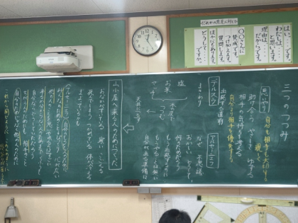 道徳の時間は、教科書の教材文「三つのつつみ」を学習しました。