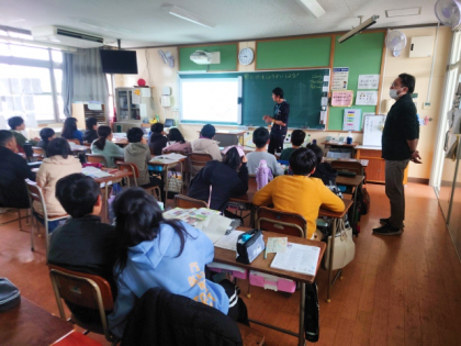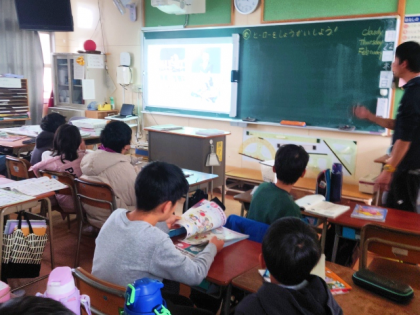 英語科の時間は、"Who is your hero?""My hero is・・・."などの英語の表現を使って、自分のヒーローを紹介し合います。