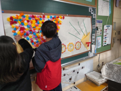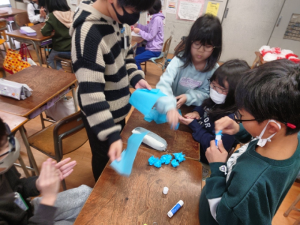 4年生は、みんなで力を合わせて、何を作っているのかな。