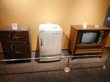 近代の大阪の人びとのくらしを紹介するフロアを見学しています。