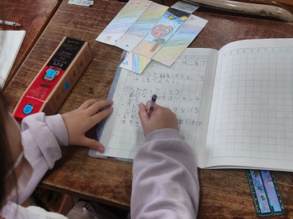 算数科の時間は、はこの形の面を紙にうつしとり、切り取ってはこを作りました。
