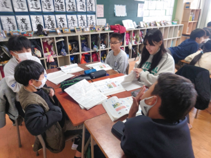 国語科の時間は、資料を見て考えたことを話す学習をしています。