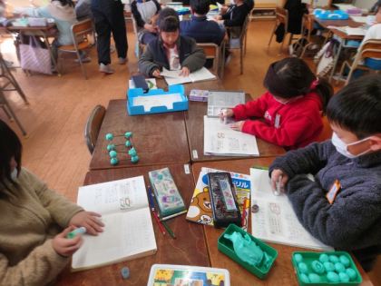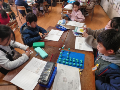 算数科の時間は、ひごとねんどを使って「はこの形」を作りました。