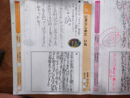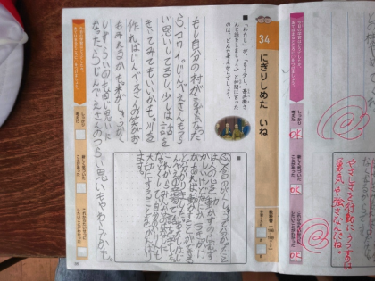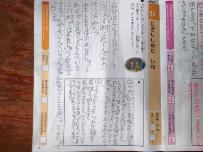 道徳の時間は、教材文「にぎりしめた いね」を学習しました。
