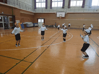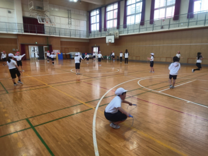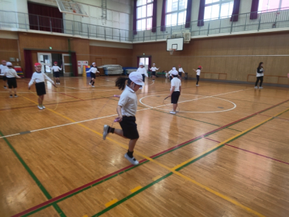 体育科の時間は、体育館で元気いっぱいなわとびの練習をしました。