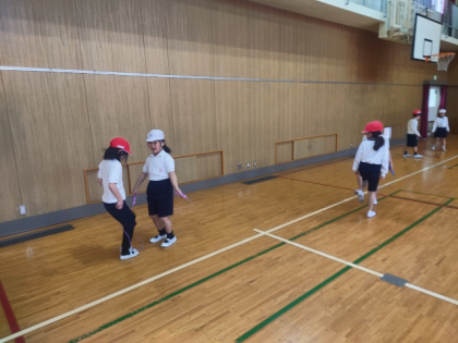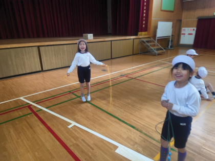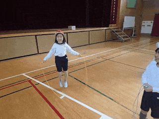 体育科の時間は、体育館で元気いっぱいなわとびの練習をしました。