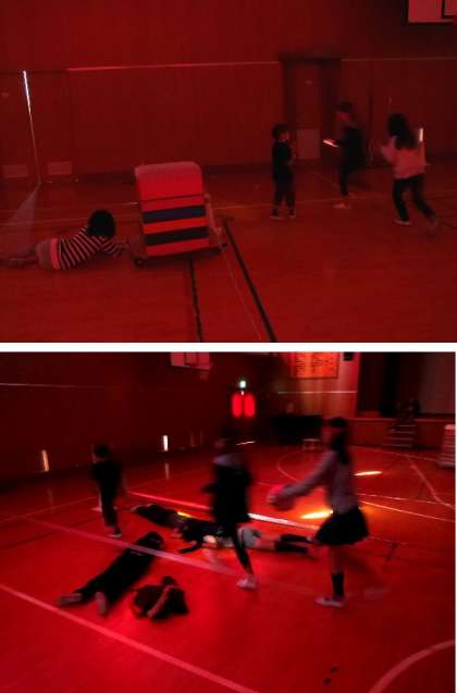 5年生が体育館のカーテンをしめて暗くして、お化け屋敷をしていました。子どもたちが自分たちで計画して、役割分担をしてたのしんでいました。子どもは遊びの天才ですね。